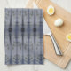 Una cocina de diseño con estampado de color azul marino, gris y verde.