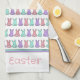 Esta linda toalla de cocina de Pascua cuenta con hileras de conejos adorables en tonos primavera de rosa, agua y lavanda. Personalice con su elección de texto especial.