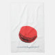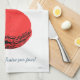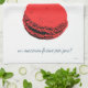 Una imagen gráfica vibrante y llamativa de un macarón de fresa roja con texto en francés. ¡Un delicioso acento para la cocina!