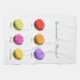 Imagen gráfica alegre y caprichosa de macarons franceses con texto en francés. ¡Una deliciosa adición a tu cocina!