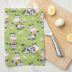 Una Toalla De Plato Verde De Vacas Personalizados Blancas Y Negras Sonrientes Felices
