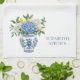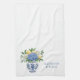 Esta toalla de plato de cocina cuenta con un hermoso jarrón de chinoiserie azul y blanco con flores de hidrangea azules y blancas y limones. Personaliza con tu elección de nombre o texto especial.
