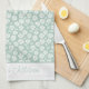 Toalla de cocina de bonitas flores boho verdes salvia y blancas. El verde es un verde pastel menta claro con flores blancas. Puedes monogramar con tu nombre o texto. Es un regalo ideal para una boda o una inauguración de casa.