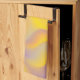 This kitchen towel features a dynamic swirl of yellow, orange, purple, and pink tones, blending together in a smooth, fluid abstract pattern that feels energetic and modern.