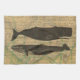 Basado en dibujos antiguos de ballenas, este es un collage rústico de arte de ballenas con ballenas, texto de Moby y mapa antiguo en el fondo.