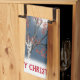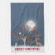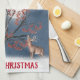 venado, búho nevado y conejo blanco con árbol de berry rojo con copos de nieve en un fondo azul y luna llena.