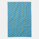 Toalla de cocina en vieiras chinas, o patrón de olas, tradicional en el trabajo textil y de esmalte, en azul turquesa suave/pavo real, aqua y azul oceánico, con acento amarillo dorado