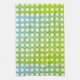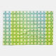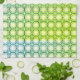 Un patrón geométrico con un diseño repetitivo cubre todo el espacio, con una mezcla de elementos de color abeja y floral. Los diferentes tonos verdes, blancos y azules crean un ambiente divertido.