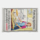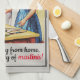 Una humorística toalla estilo kitsch retro con una vintage escena de cocina de mediados de siglo, mostrando a un ama de casa que comparte su experiencia de trabajar en la oficina del hogar. Diseño original disponible exclusivamente en ©Oh_Nostalgia tienda online. Todos los derechos reservados.