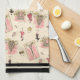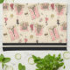 16" x 24" toalla de cocina con una imagen de las señoras elegantes rosadas, negras y del oro y de las señales prominentes en París en beige. Hay el L'arc de Triumphe, la torre de Eiffle y la basílica hermosa del Sacré Cœur en la cumbre de Montmartre. Fronteras de la raya negra.