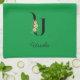 Paño De Cocina Watercolor botanical green initial monogram