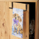 Celebrate the irresistible charm of the beloved dachshund with this delightful doxie-themed kitchen accessory. This sweet wiener dog portrait features a long-and-low doxie sitting proudly with a soft, curious expression and soulful eyes that instantly melt hearts. Around the adorable sausage dog, playful watercolor florals bloom in soothing purples and blues, creating a light, airy garden setting.