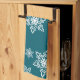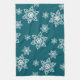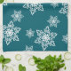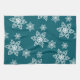 Weiße Schneeflocken unterschiedlicher Größe sind vor dem Hintergrund der Farbe der Meereswellen gemalt.