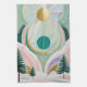 Esta encantadora obra de arte te traslada a una tranquila tierra de maravillas de invierno, bañada en una encantadora paleta de azul pastel, rosa suave, morado suave y verde sereno, todo acentuado por el oro resplandeciente. Tres árboles encantadores se alinean con gracia en medio de una delicada nevada, sus ramas ligeramente empolvadas con los tonos soñados. Encima, un sol estilizado, adornado con complejos patrones, arroja un cálido y caprichoso resplandor a través del cielo, completando este mágico e imaginativo paisaje de nieve. Es una pieza que evoca sentimientos de paz, asombro y sueños nostálgicos de la infancia.