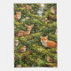 Hidden deep in a lush green forest, gentle foxes rest among moss, leaves, and soft woodland light.