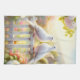Two white doves rest together on a weathered garden gate, framed by blooming roses and soft spring foliage beneath a warm, glowing sky. The scene evokes gentle romance, peace, and timeless countryside charm, blending cottagecore nostalgia with a dreamy watercolor aesthetic. Pastel pinks, creamy whites, and sunlit greens create an airy, serene mood that feels tender, hopeful, and quietly joyful. The composition feels storybook and intimate, inviting a sense of calm, connection, and slow living inspired by floral gardens and rural beauty. AI generated artwork.