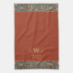 patrón de william morris blanco, naranja rojo oriental floral, azul turquesa persa verde azulado, arte vintage en el parque holland, artista británico famoso, flores familiares tradicionales, "monograma del personalizado art deco", "toalla de cocina personalizada", "nombre personal art nouveau", "elegante trapo clásico", "añada tu propio texto"