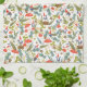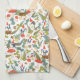 Espectacular estampado de bosques verdes y rojos, diseñado por Shelby Allison, con pequeños personajes gnomos, hongos, flores y follaje.