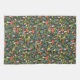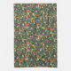 Espectacular estampado de bosques verdes y rojos, diseñado por Shelby Allison, con pequeños personajes gnomos, hongos, flores y follaje.
