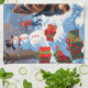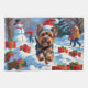 Paño De Cocina Yorkshire Terrier en Nieve con Gorra Navidad