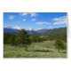 El Parque Nacional de las Montañas Rocosas es conocido por esas impresionantes Montañas Rocosas - visto aquí con nieve, con frondosos bosques verdes en primer plano y cielo azul. Esta imagen también aparece como fondo de pantalla panorámica "Rocky Mountain View" en www.mlewallpapers.com.