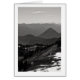 Fotografía de paisaje blanco y negro de colinas onduladas y montañas hasta donde se veía la vista. Filas de árboles aquí y allá. Y todavía quedan algunos trozos de nieve a principios del verano. Derechos reservados ©2023 Kimberly J Tilley. www.zazzle.com/store/developingnature