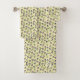 Un patrón alegre y brillante de panes rosados, morados y amarillos con un monograma en una flor floral en la esquina.