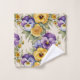 Una encantadora y moderna florida vintage de tonos morados, azules y amarillos con rosas amarillas, sobre un fondo crudo. Impresión impecable.