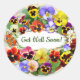 Un hermoso tazón plantado con pansies en tantos colores adorables, con una imagen de sombra en el fondo, sólo el tónico para alguien que no se siente tan bien, al enviar una tarjeta Get Well, por qué no agregar un hermoso sellador de sobre para hacerlo extra especial, o agregar uno a cualquier lugar estacionario para transformarlo, y deleitar al destinatario. Cambie el texto y utilice para otras ocasiones y saludos también.