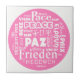Baldosa cerámica que muestra Peace Paz Pax multilingüe. Este es un diseño de paz en varios idiomas que he actualizado recientemente de un original que creé hace unos 25 años. Se hizo famoso en las insignias de botón, postales y camisetas. El original fue creado en Letraset - si alguien lo recuerda!? Ahora disponible de nuevo en una variedad de estilos de imagen para el siglo XXI!! ¡Educativo y práctico, y un diseño sorprendente! ¿Qué no te gusta? :