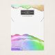 Las modernas tarjetas de visualización de collares de joyas presentan un elegante fondo negro con los bordes de un lujoso arcoiris pastel, el logotipo de tu empresa, los iconos de los medios sociales que se pueden eliminar y los detalles de tu empresa.