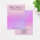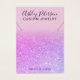 Un elegante y moderno collar de joyas con marcadores de hoyos que se pueden mover o borrar con una elegante y sencilla tipografía de estilo con letras a mano en un falso purpurina rosa y morado y un fondo elegante y de moda rosa pastel. todo texto es personalizable, añada tus medios sociales.