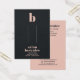 Nuestra moderna tarjeta de visualización de clips y barrettes de tipografía audaz presenta un monograma rosa brillante inicial en el tipo de serif funda inferior, fijado en un elegante fondo negro de carbón vegetal. Delante de la tarjeta hay dos líneas impresas para guiar la corte de las correas para insertar los clips de pelo y, por debajo de eso, el nombre de su negocio y los servicios de salón, también en tinta rubrosa. Los detalles adicionales sobre tu negocio, incluyendo el número de teléfono, la dirección, la dirección de correo electrónico y los nombres de los medios sociales, se pueden personalizar en la parte posterior de la tarjeta... en colores inversos desde el frente (texto negro carbón sobre fondo rosa oscuro). Simplemente reemplace el texto de ejemplo con su propio texto en la plantilla de personalización.