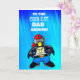 Una tarjeta divertida del Día del Padre que tiene un fondo azul fresco, y una imagen de un pingüino hip-hop/ rapero con el dicho "Al papá más frío que hay". Agregue su propio mensaje personal a esta tarjeta o cambie el texto utilizando la plantilla personalizada.