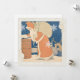 Ilustración vintage de Papá Noel con su saco lleno de juguetes en un tejado nevado a punto de bajar por la chimenea con uno de sus renos en el fondo. Marco vintage. Ideal para felicitaciones de Navidad.