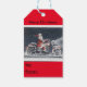Papá Noel en la etiqueta de regalo de la motocicle