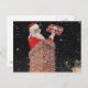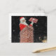 Santa está en su camino por la chimenea con regalos y rudolfo el reno principal está parado mirando. Hay una ligera caída de nieve, y santa está muy feliz. Papel ultrarrepesado Delante brillante
