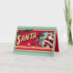 ¡Personaliza con tus propios saludos de Navidad y tu apellido! Asegúrese de escribir el mensaje y el nombre dos veces para completar el efecto de sombra de caída. El diseño es de un anuncio de Navidades retro. El texto dice: "¡Hey niños! Papá Noel está aquí en nuestro departamento de juguetes todos los días desde el mediodía hasta el 5." Cuando un niño y un chica corren a saludar a un Papá Noel que ondea. En el interior se puede leer "Feliz Navidad desde" con espacio para el nombre de su familia.