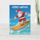 Surfeando las olas de la temporada en esta tarjeta de Navidad, Papá Noel te trae cálidos deseos y un toque de alegría navideña. Que tu Navidad esté llena de la alegría de cabalgar las olas del amor, la risa y los buenos momentos.