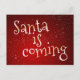 ¿Su hijo se está poniendo ansioso en la carrera hacia los Navidades? Cuando un niño cree en Santa Claus y le digan que no recibirá regalos de Navidad si es travieso, entonces esto puede llevar a la ansiedad, pues el niño se preocupa de que Santa Claus no llame a su casa. Esta postal de Santa los pondrá a gusto. En la parte delantera de la postal está el mensaje "Santa se acerca". En la parte posterior, hay una marca postal del Polo Norte y usted puede personalizar el mensaje para su propio hijo y su dirección. Esto es lo que se lee... "Querida Susan, sólo para que sepas que has sido un chica razonablemente bueno este año, y que vendré con tus regalos el 25 de diciembre. Asegúrate de dejar un caldo y de estar dormido en la cama temprano en la noche de los Navidades. Santa Claus". Asegúrate de cambiar "chica" a "niño" si tu hijo es un niño, o puedes reescribir completamente el mensaje si quieres.