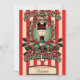 Vintage Padre Navidad, rayas rojas, arco y baubles. Saludos de temporada. Nombre modificable en la parte delantera y en el cuadro de texto de la parte posterior.