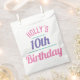 Bolsas de papel para una fiesta de cumpleaños número 10. Diseñado para un niño que tiene un cumpleaños. Fiesta de la celebración del cumpleaños con la edad. Bolsa de fiesta de cumpleaños. Añade el nombre y la edad de la persona cuyo cumpleaños es. Bolsa de caramelo. Bolsa de maleza.