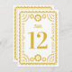 Esta hermosa carta de papel picado inspirada en el número de la mesa boda tiene un marco ornamentado en amarillo cálido sobre un fondo blanco, y tipografía festiva. Este elegante y moderno diseño es una excelente elección para un boda latino, una cena de ensayo, una fiesta de compromiso o una ducha de novia. Vea coordinar elementos de la colección...