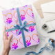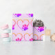 Neon arcoíris mascota traza con el corazón sobre fondo rosado. Se puede cambiar el color de fondo.