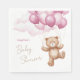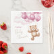 Una servilleta de papel para la ducha infantil decorada con un adorable oso de peluche montando globos en las nubes.