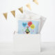 ¡Una fiesta muy agradable para los clientes! El diseño presenta adorable cachorro Pug, vestido por un gorra fiesta, rodeado de coloridos globos y serpentines. El nombre se puede cambiar fácilmente; sólo tiene que hacer clic en el botón de personalización.
