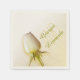 Hermosas toallas simples de papel boda de flores de rosa blanca. Edite estas servilletas con los nombres de sus novios y novios. Moderna rosa blanca y sencilla, con un fondo rústico de color crema. Ideal para una boda de rosa, romántica o de campo. Una gran adición personalizada a las mesas bodas. Fotografía y diseño de Sarah Trett.