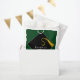 La fiesta de graduación favorece los regalos con la tapa negra clásica y la placa de oro sobre un fondo verde. Editar texto para añadir el año de clase superior.