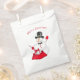 El bolso de regalo de vacaciones se muestra en el Libro Blanco con la impresión Feliz Navidad y el Sr. Snowman. Personalizar este artículo o compra tal cual.