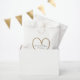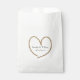 Elegante bolsa de favores matrimoniales, con gráficos de un contorno cardíaco purpurina dorado. Personalice el texto de personalizado negro para su evento de boda. Ideal para los dulces y los bares.